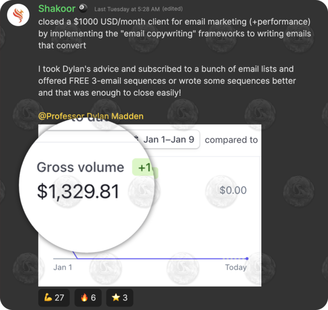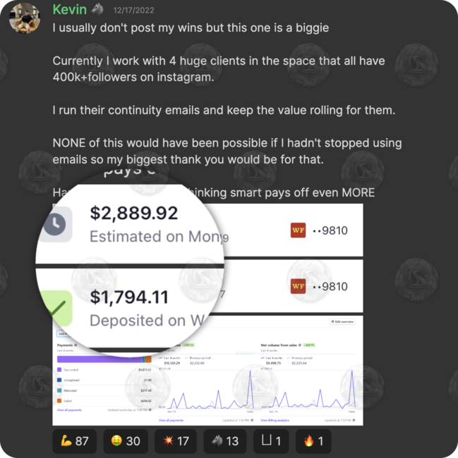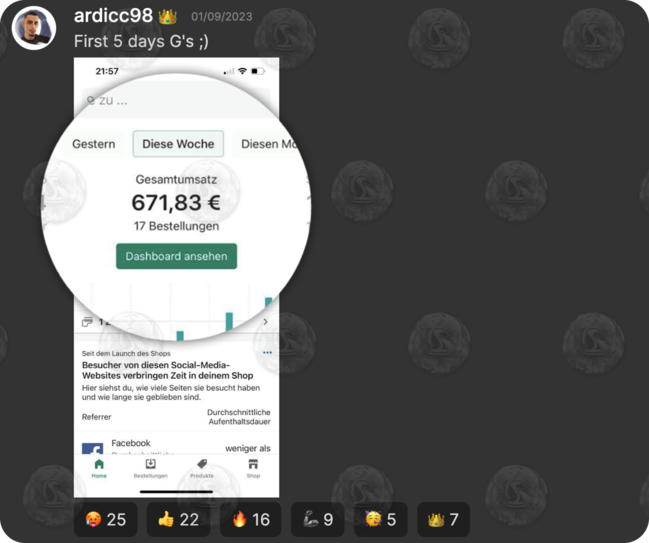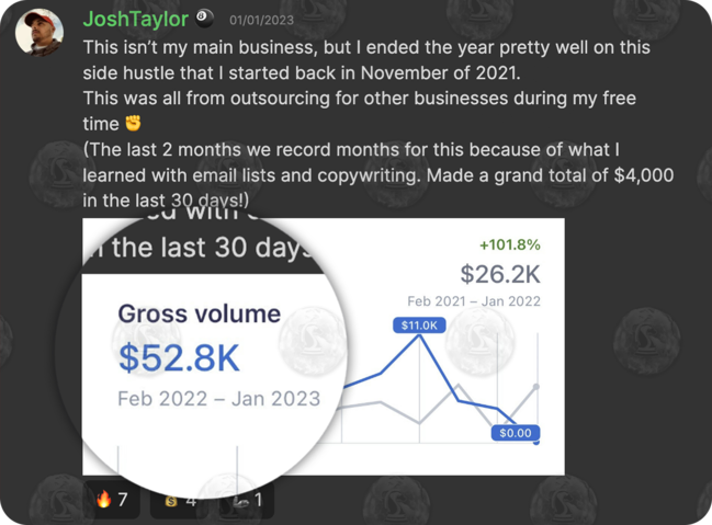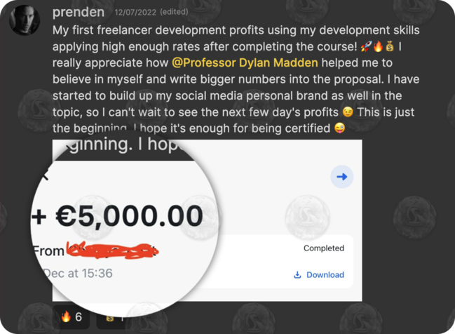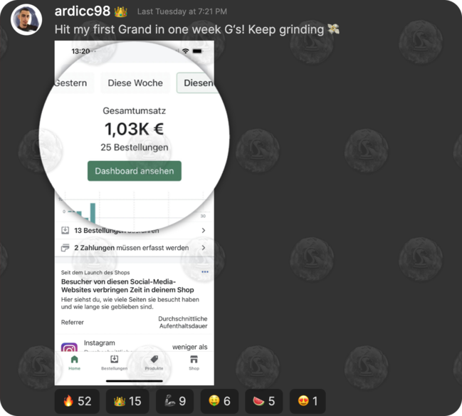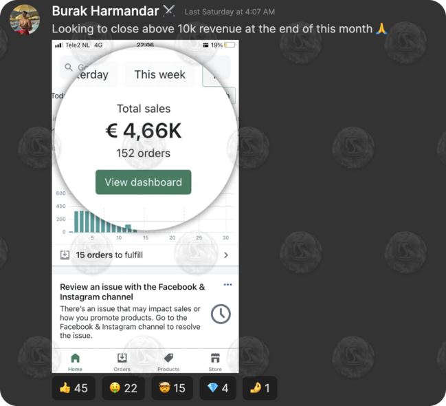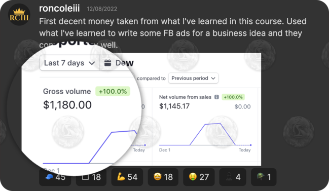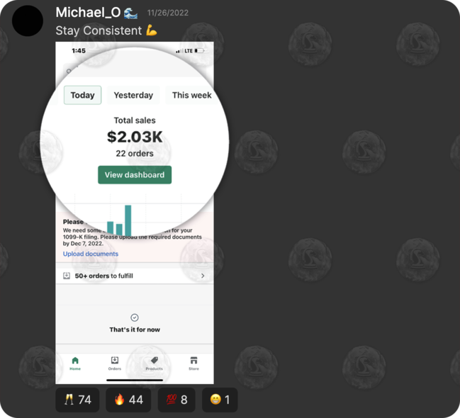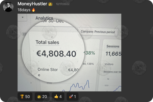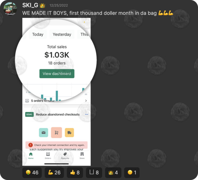 Our students level up in business like in a videogame. Unlock new tutorials, build your money-making arsenal, and add more skills to your inventory. Our app is designed to gamify your progress from zero to 10K a month and beyond.